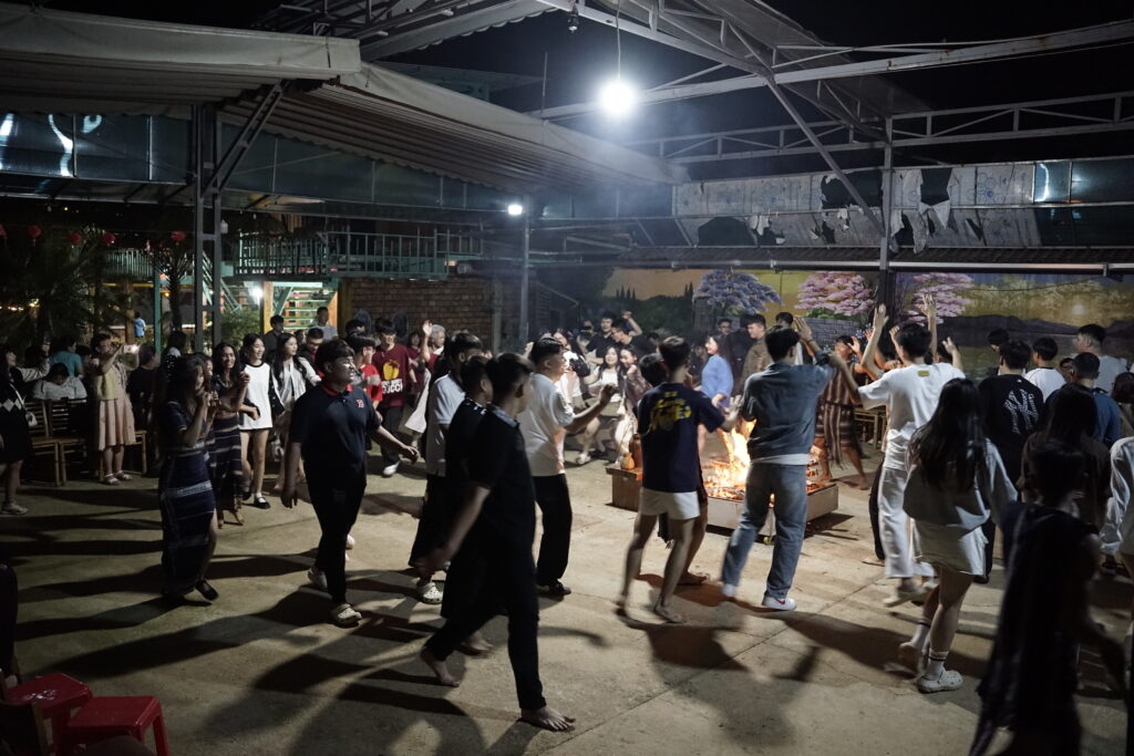 Trong không khí se lạnh, dưới ánh lửa bập bùng của ngọn lửa Tây Nguyên, với tiếng nhạc cồng chiêng các điệu nhảy uyển chuyển của các chàng trai cô gái buôn làng K’ho giúp các em được tìm hiểu về văn hóa dân tộc K’ho.